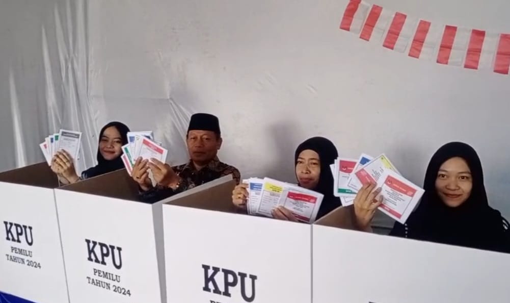 Wali Kota Tanjungbalai H.Waris Tholib bersama istri dan dua orang putrinya menggunakan hak suara di TPS 16. Usai mencoblos, Waris berharap Pemilu 2024 berjalan lancar, tanpa hambatan, aman dan damai, terutama setelah pemungutan suara.