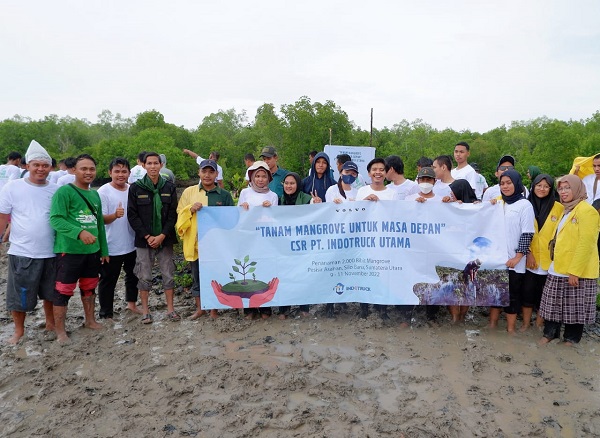 SILAULAUT, Asahan (Waspada): Menjaga lingkungan dan penguatan pesisir, PT Indotruck Utama tanam 2 ribu batang bibit mangrove di pesisir Desa Silo Baru, Kec Silau Laut, Kab Asahan.
