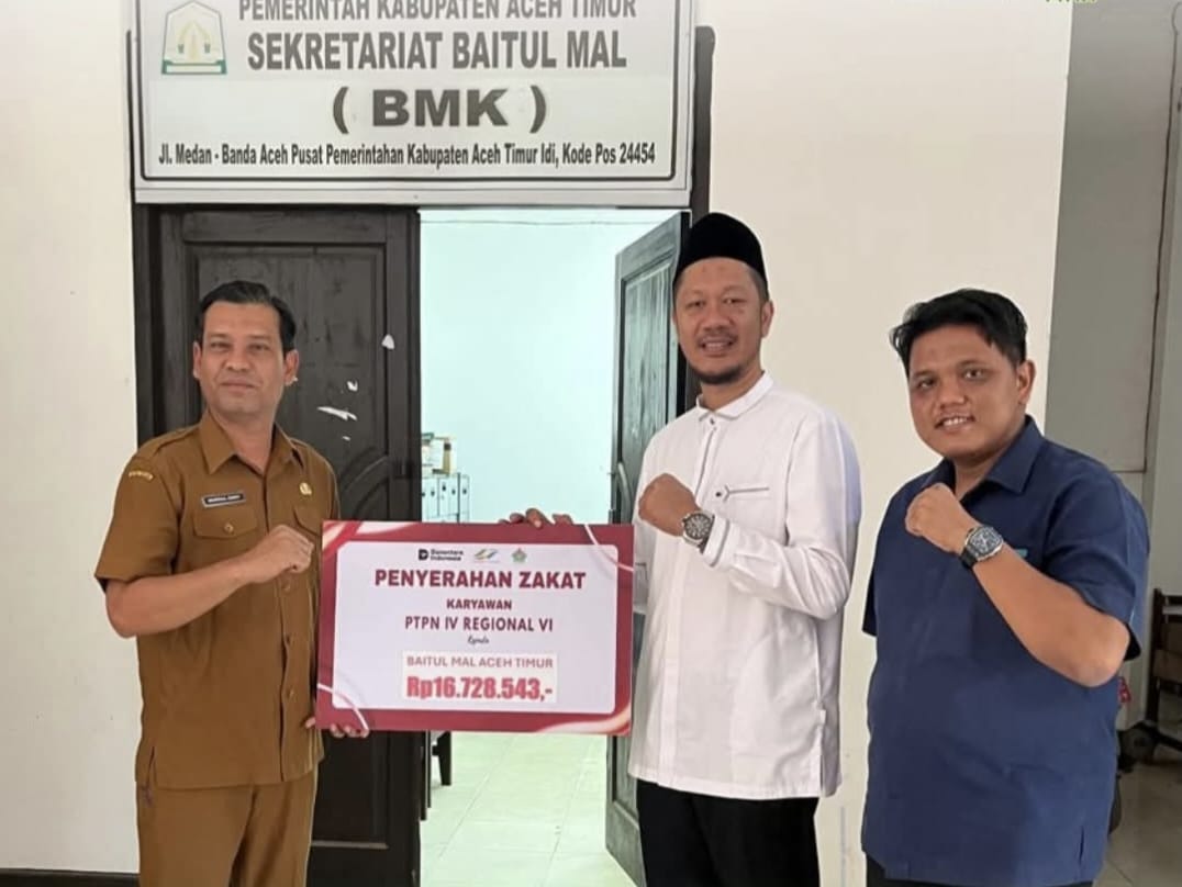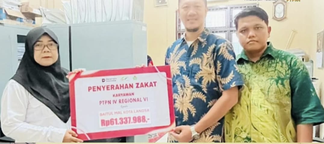 Penyerahan zakat karyawan PTPN IV Regional VI diserahkan langsung Kasubbag SDM, Alfin Mutipati kepada Baitul Mal Aceh Taming senilai Rp16.728.543, Baitul Mal Kota Langsa senilai Rp61.337.988, Baitul Mal Aceh Utara senilai Rp16.738.543 dan Baitul Mal Aceh Timur senilai Rp16.728.543.