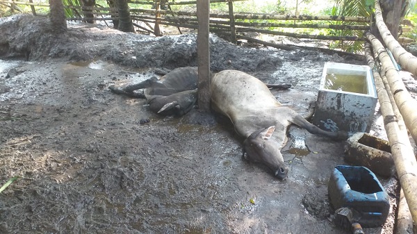 Tetapi ada juga ternak yang tidak terlihat ada gejala, tiba-tiba lemas, dan beberapa jam kemudian langsung mati. Sekalipun sudah dilakukan pengobatan sesuai pengalaman peternak namun sampai saat ini belum bisa teratasi.