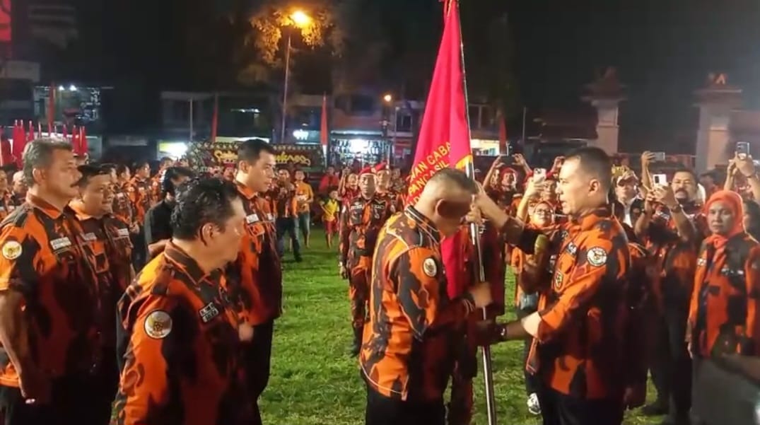 Ketua MPW PP Sumatera Utara, Musa Rajeksah melantik Junaidi sebagai Ketua DPC PP Deliserdang di Lapangan TR.Raja Muda (Lapangan Segitiga) Lubukpakam, Sabtu (23/11/24) malam.(crin)
