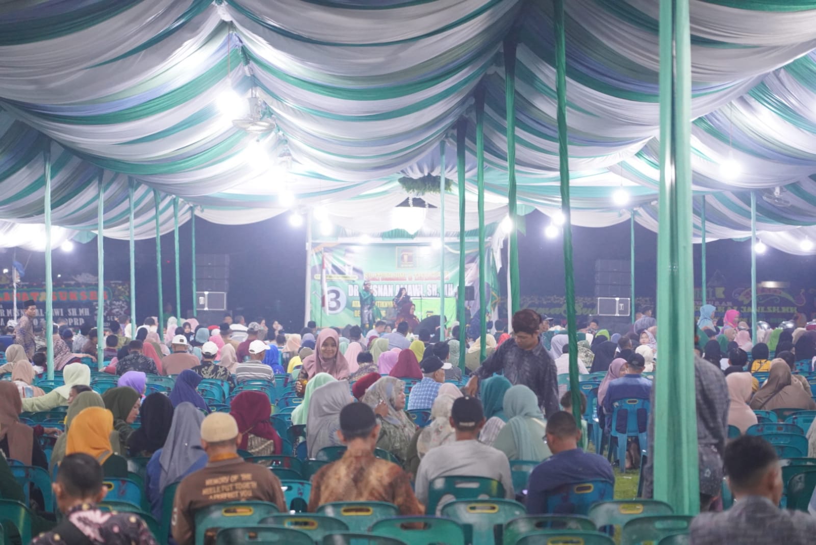 DELISERDANG (Waspada): Tasyakuran pelantikan Dr. Misnan Aljawi SH MH untuk ketiga periode yang dihadiri ribuan warga berlangsung meriah, Minggu (20/10) di Lapangan Sepak Bola SSB Sinar Pagi, Kecamatan Percutseituan.