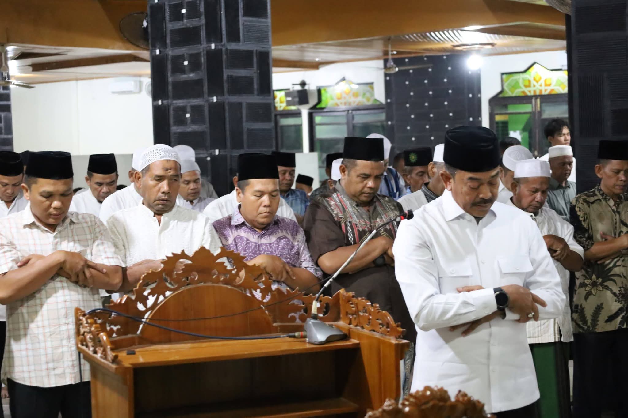 PANYABUNGAN (Waspada.id): Rombongan Safari Ramadan Pemerintah Kabupaten Mandailing Natal (Pemkab Madina) menunaikan salat Tarawih di Masjid Taqwa, Desa Panggorengan, Kecamatan Panyabungan, pada Sabtu (28/2/2026).
