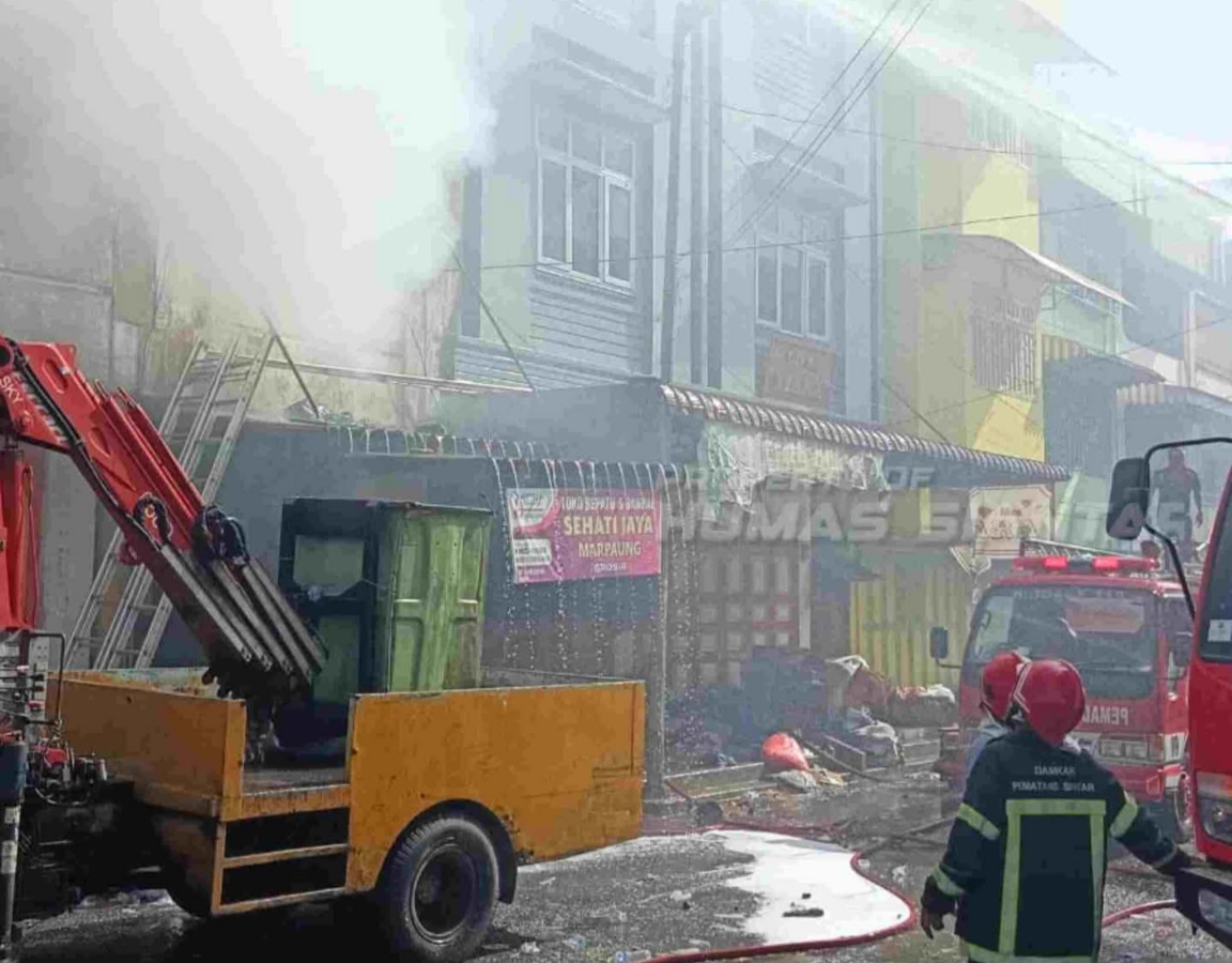 PEMATANGSIANTAR (Waspada.id): Satu ruko grosir sandal dan sepatu bernama Sehati Jaya Marpaung di Jalan Thamrin, Kelurahan Dwikora, Kecamatan Siantar Barat, terbakar, Jumat (10/04/2026) subuh sekira pukul 04.15 WIB.