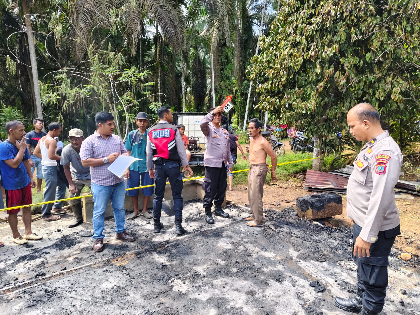 Kapolres Palas, AKBP Diari Astetika, SIK, melalui Kapolsek Sosa, AKP Mulyadi, SH, menerangkan, menurut korban pemilik rumah, Giri Anto 70, dan anaknya pemilik bengkel Tukul Wahyudi 49, musibah itu diduga akibat korsleting listrik.