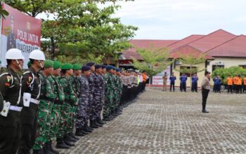 Tampak hadir Wakapolres Kompol Ismawansa, para Kabag, Kasat, Kasi, Kapolsek, personel Polres dan lainnya.(a28)