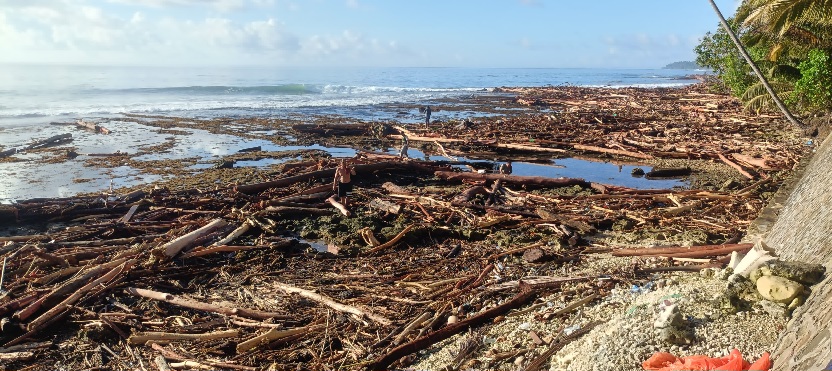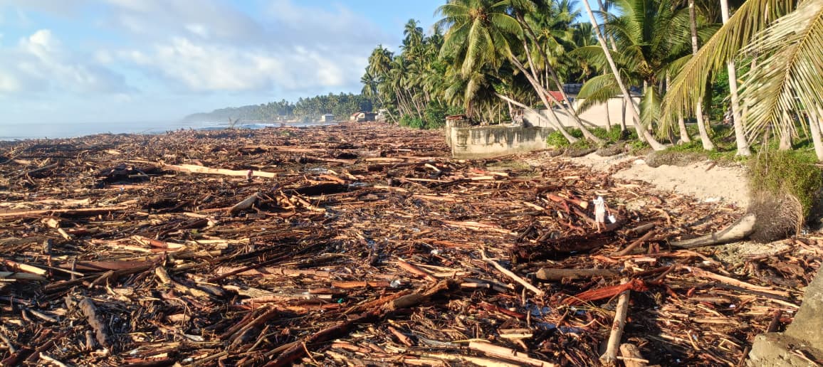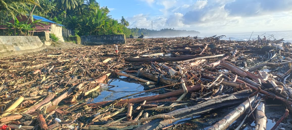 “Saya melihat tumpukan kayu berbagai jenis digulung ombak besar, sehingga kayu terbawa arus ke tepi pantai,” ujar Ferri Gowasa..