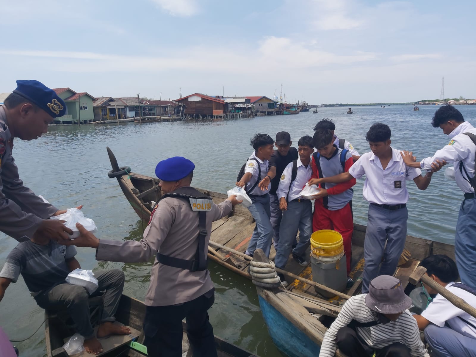 Kegiatan Jumat Barokah dipimpin Kasat Pol Airud Res Langkat AKP Heru Ediyanto, SH. yang menelusuri Alur Perairan Sei Babalan Kecamatan Berandan Barat dan menyambangi warga serta membagikan nasi kotak kepada warga melintas menaiki perahu sampan.