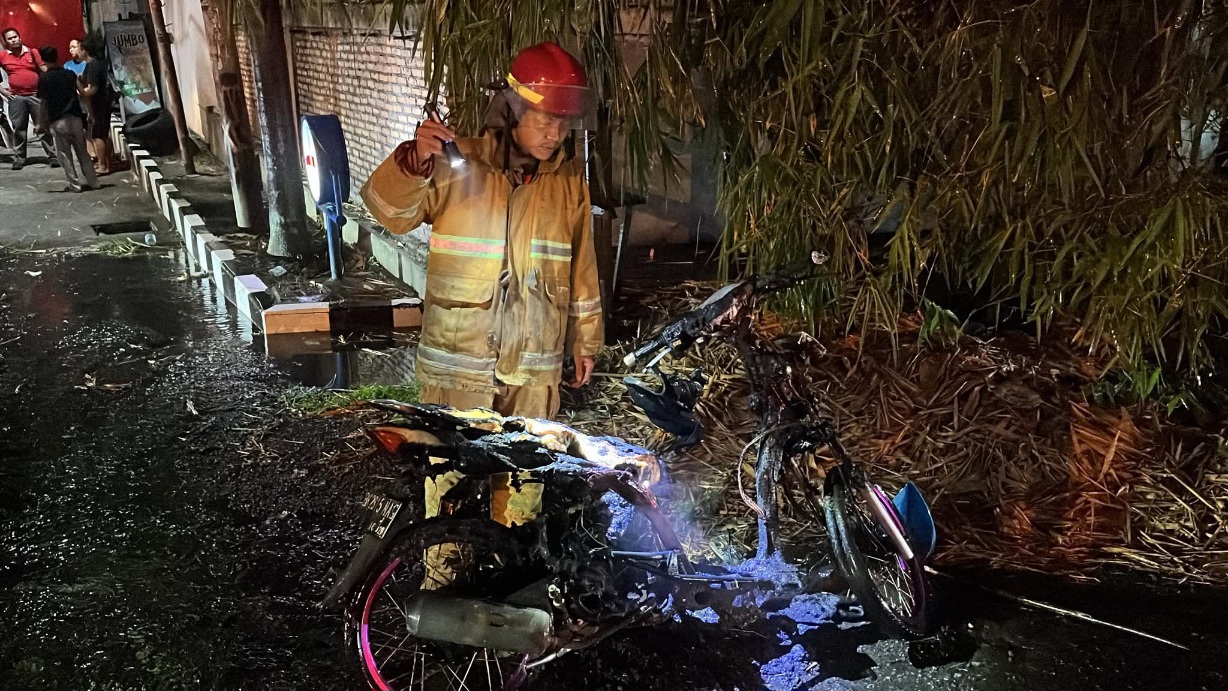 Personel Dinas Pemadam Kebakaran dan Penyelamatan Kota Tebingtinggi menerima laporan pada Sabtu (21/2/2026) pukul 22.43 WIB dari Kisnok, warga setempat, yang menyatakan “adanya satu unit sepeda motor terbakar”.