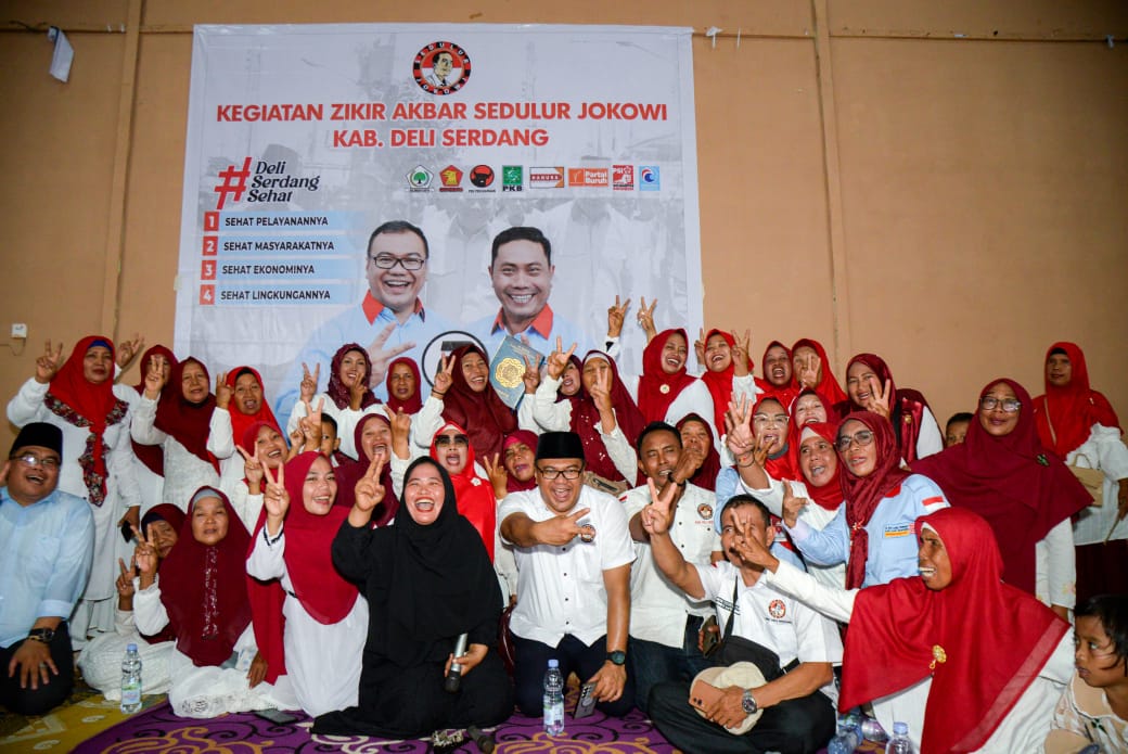 DELISERDANG (Waspada): Seribuan warga Deliserdang yang tergabung dalam Sedulur Jokowi melakukan zikir akbar di Wisma Kurnia, Kecamatan Batangkuis, Jumat (22/11/24).