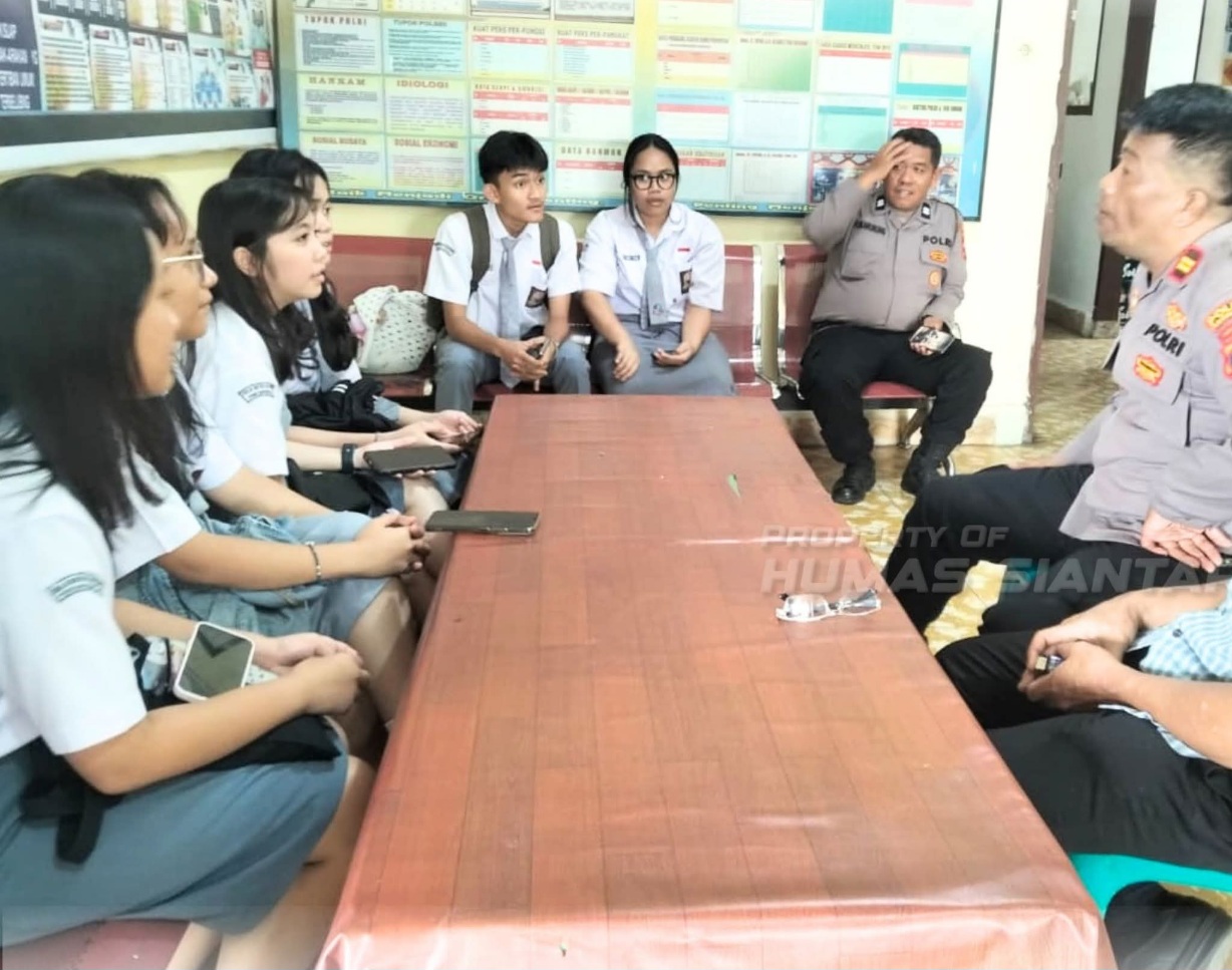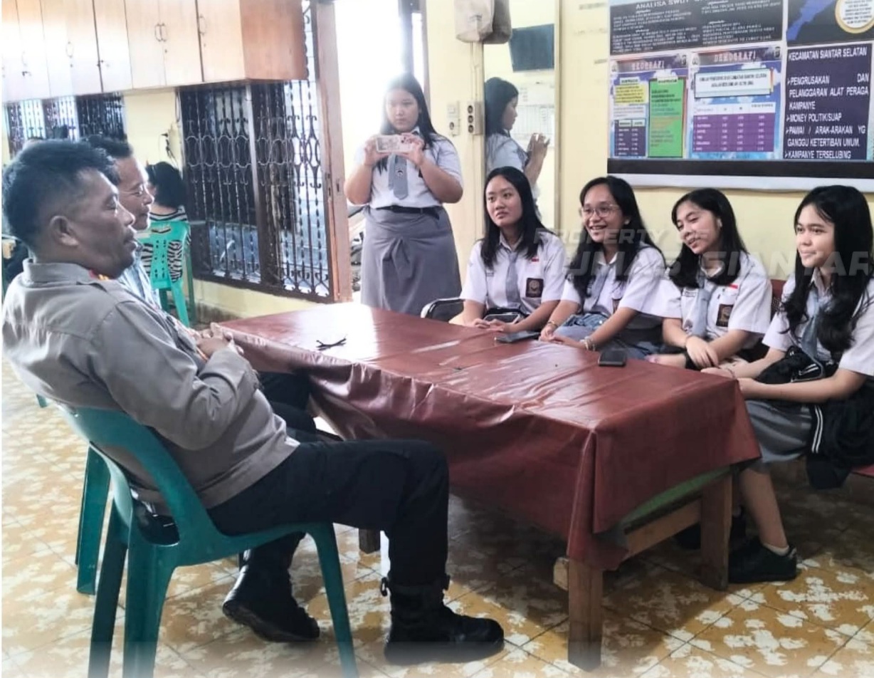 PEMATANGSIANTAR (Waspada.id): Kapolsek Siantar Selatan, Iptu Priston Simbolon, menerima kunjungan siswa-siswi SMA Swasta Kristen Kalam Kudus di Mapolsek Siantar Selatan, Rabu (5/11/2025).