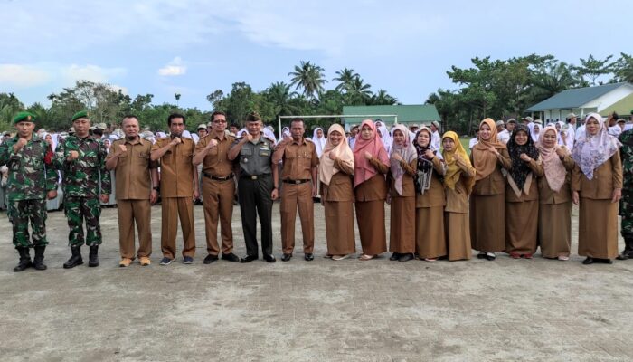 MEDAN (Waspada): DANRAMIL 09/Hinai Kapten Inf M. Ridwan memberikan arahan dan motivasi ketika menjadi inspektur upacara (Irup) di depan ratusan siswa SMA Negeri 1 (SMANSa) Hinai, di sekolah tersebut, Jl. Batu Malenggang, Kec. Hinai, Kabupaten Langkat, beberapa waktu lalu.