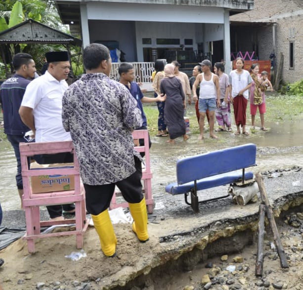Setelah itu Bupati Zahir menuju Dusun X Desa Nenassiam yang terimbas banjir luapan sungai.