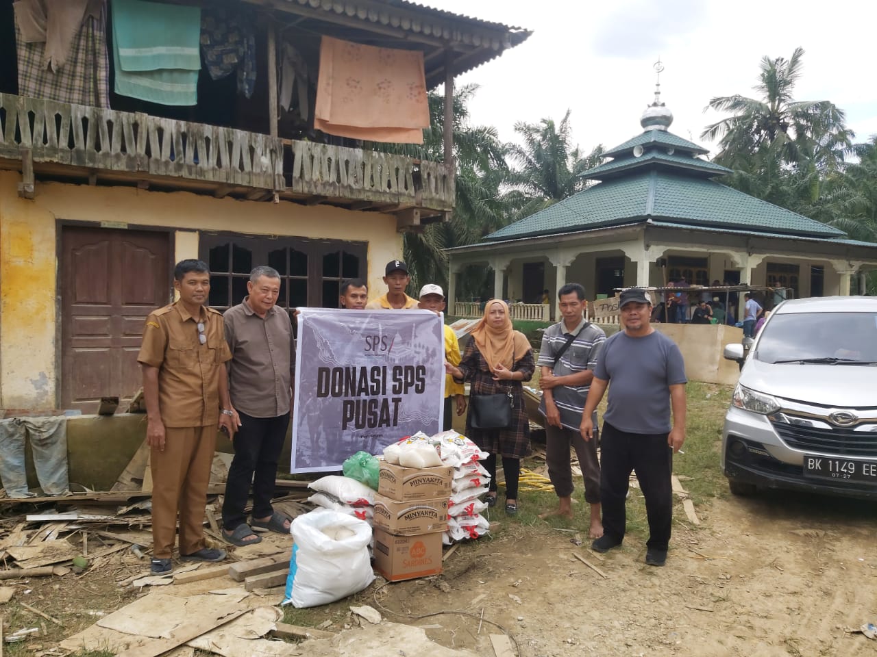 P.BRANDAN (Waspada.id): Serikat Perusahaan Pers (SPS) Sumut menyalurkan bantuan paket sembako dari SPS pusat untuk korban terdampak banjir dan longsor di Kecamatan Sei Lepan dan Kecamatan Brandan Barat Kabupaten Langkat.