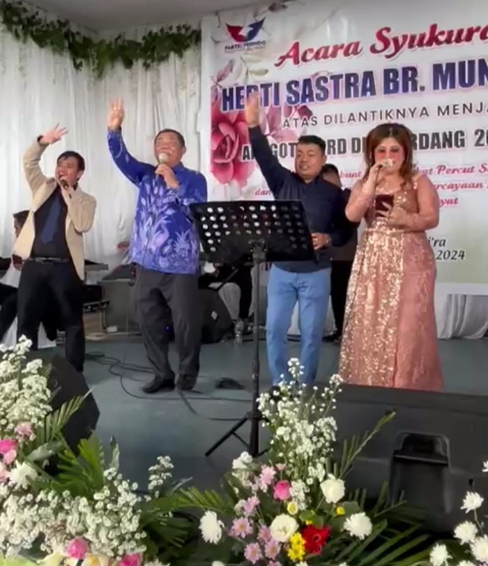 Herti Munthe juga mengungkapkan bahwasanya saat syukuran atas pelantikan dirinya di Gedung Graha Syi’ra pada Sabtu (2/11) yang langsung dihadiri Calon Bupati Deliserdang HM Ali Yusuf Siregar bersama istri Hj. Sri Pepeni serta Ketua Tim Pemenangan Yusuf-Bayu Dr Misnan Aljawi SH MH sudah menyampaikan kepada pendukungnya saat Pileg 2024 untuk Pilkada Deliserdang untuk mencoblos nomor urut 3 Yusuf-Bayu.