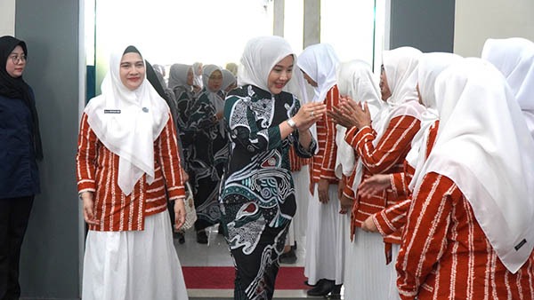 Pj. Ketua TP PKK Batu Bara, Ny. dr. Febyriani Heri Wahyudi, menyambut hangat kedatangan TP PKK Kabupaten Langkat.