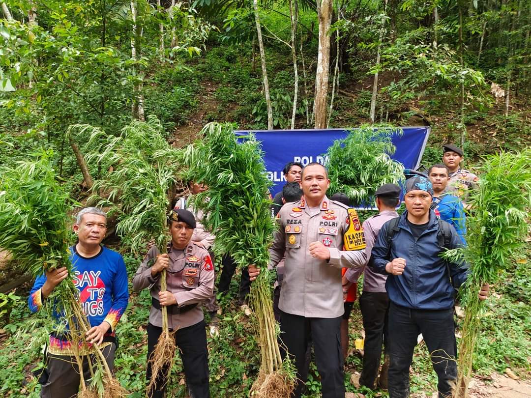 Teranyar, Kapolres Madina AKBP HM Reza Chairul AS, SIK, SH, MH memimpin pemusnahan ladang ganja 5 hektare di pebukitan Tor Sihite Sumur Holbung Desa Pardomuan, Kec. Panyabungan Timur.