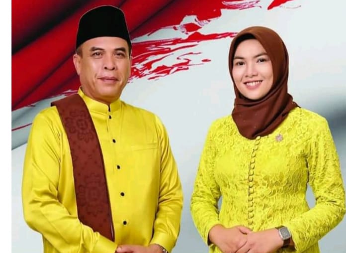 PANYABUNGAN (Waspada): Bupati Mandailing Natal HM Jafar Sukhairi Nasution dan Wakil Bupati Madina Atika Azmi Utammi Nasution membahas plasma warga Natal dalam audiensi di ruang kerja bupati, Kamis (6/7).