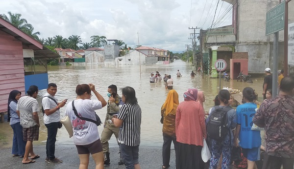 Kepala BPBD Kabupaten Labura Abdi Yoso dihubungi Waspada terkait banjir melanda di Ibukota Labura Aekkanopan belum memberikan komentar. (c04).