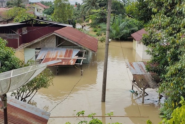 “Di badan jalan Polo Terutung menuju komplek perumahan, tinggi air sepinggang orang dewasa. Di dalam rumah tinggi air sebadan saya mencapai 1,7 meter. Jika hari ini kembali hujan, air akan lebih tinggi lagi”, sebutnya.