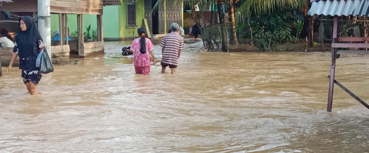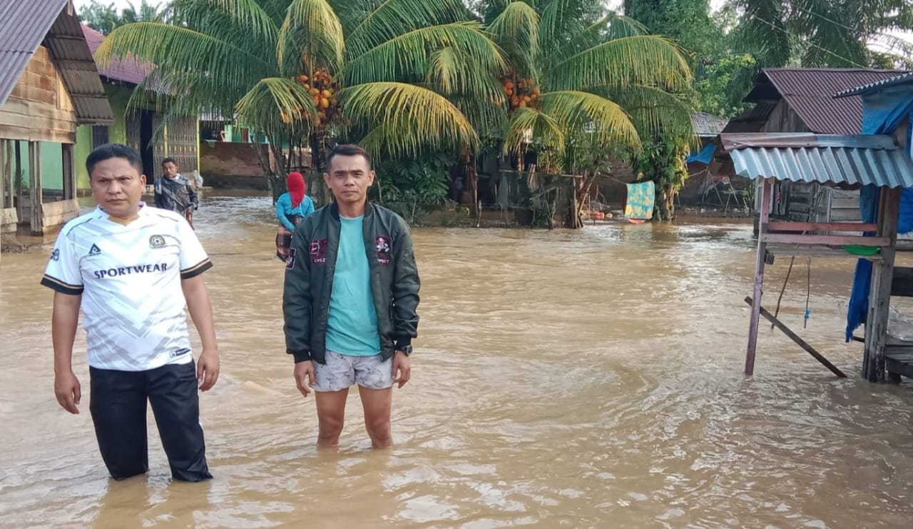 Menurut warga, air mulai naik sekitar pukul 05.00 WIB pagi tadi, akibat meluapnya sungai Sosa. Air datang begitu cepat dan menggenangi ratusan rumah warga.