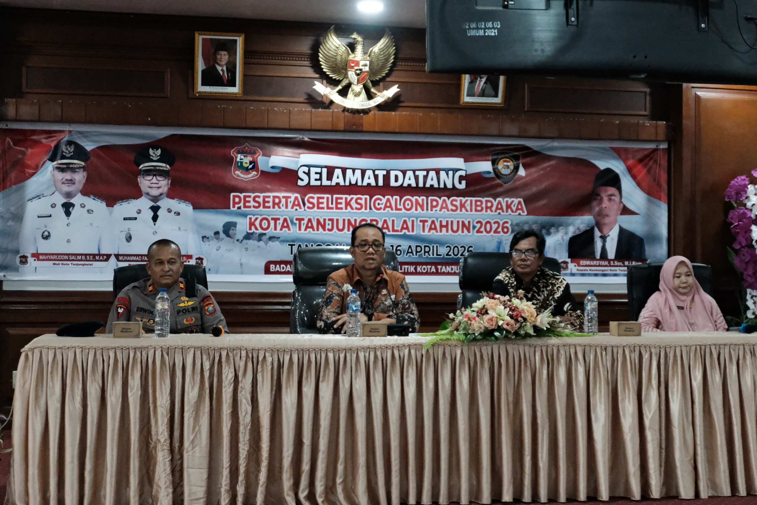 “Seleksi dilaksanakan 6 sampai 16 April, pembukaan pusdiklat direncanakan 30 Juli dan pengukuhan 14 Agustus 2026,” kata Wakil Wali Kota Tanjungbalai Fadly Abdina saat membuka seleksi calon Pasukan Pengibar Bendera Pusaka (Paskibraka) Kota Tanjungbalai Tahun 2026 di Aula Sutrisno Hadi, Kantor Wali Kota Tanjungbalai, Kamis (9/4).