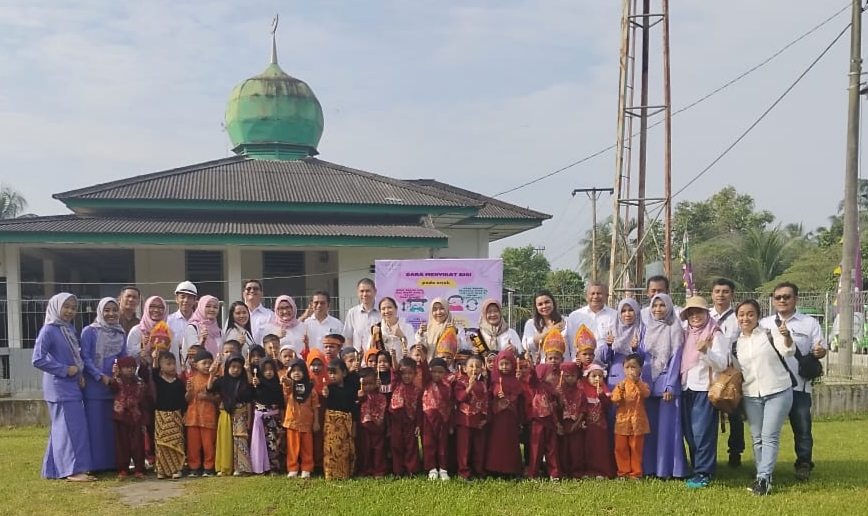 Ketua Tim KISS Luluk Wiliam dan rombongan didampingi Grup Manajer II Socfindo Erikson Ginting, Pengurus Kebun Socfindo Mata Pao M.Irsan Dompu serta jajaran bersama anak PAUD Tunas Bangsa saat Kunker ke PT.Socfindo Mata Pao, Senin (15/1) kemarin di halaman Balai Karyawan setempat.( Waspada/Ist.)