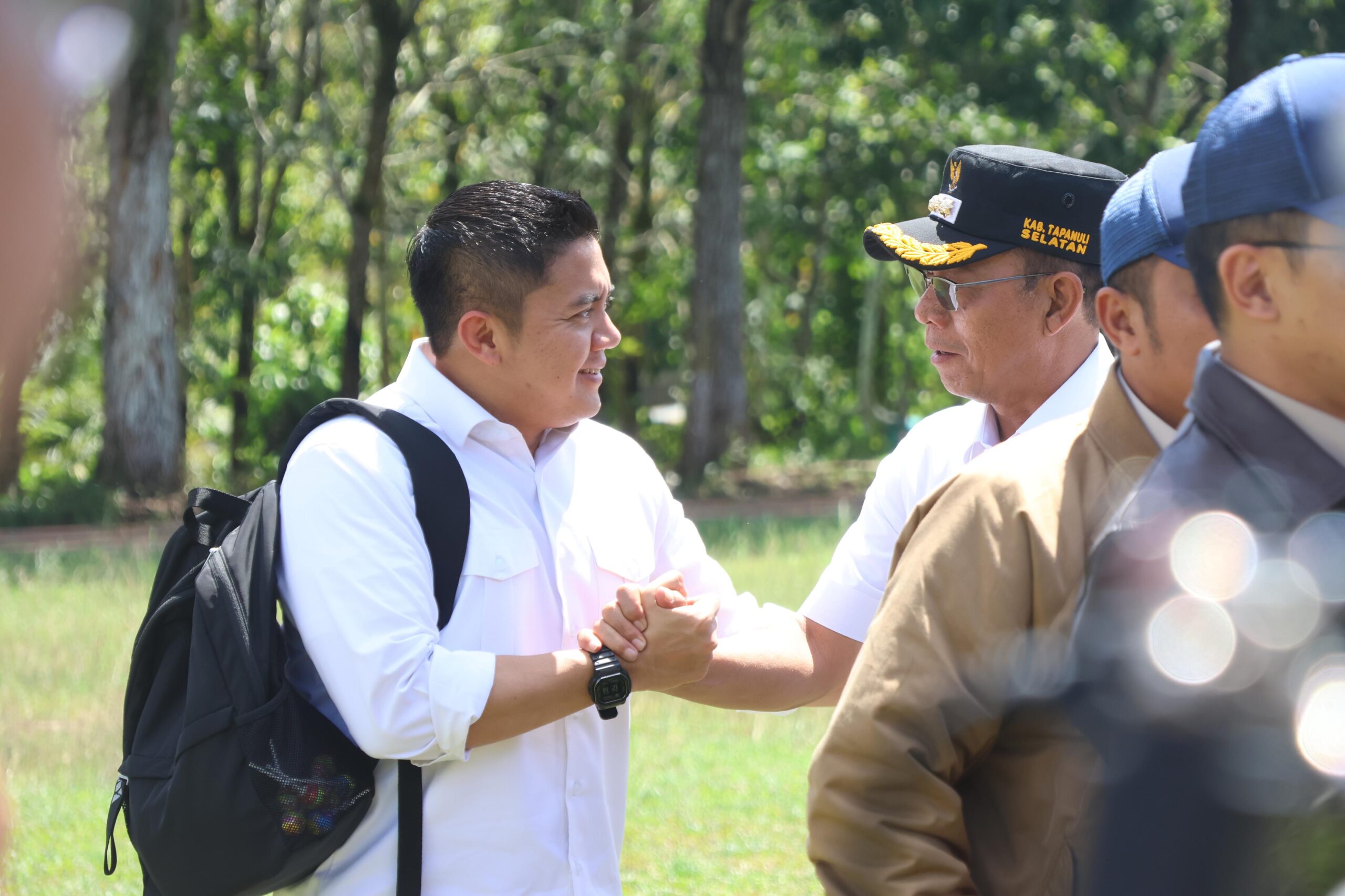 Presiden tiba di lokasi sekitar pukul 12.45 WIB dan disambut Gubernur Sumut Bobby Afif Nasution, Bupati Tapsel Gus Irawan Pasaribu, dan Bupati Tapteng Masinton Pasaribu. Di lokasi, Presiden meninjau area pembangunan jembatan dan berinteraksi dengan petugas yang tengah bekerja di lapangan.