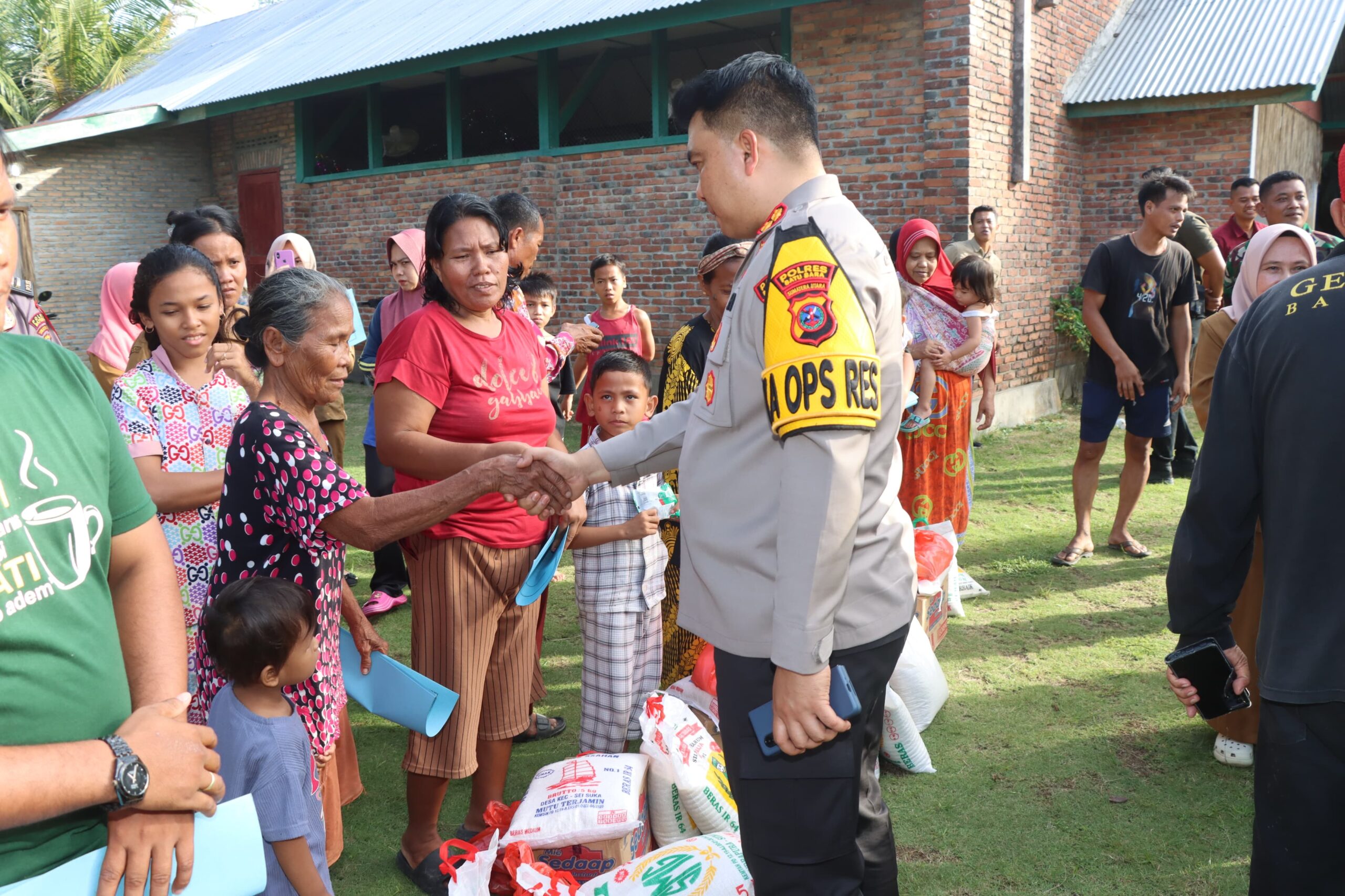Bersama Dandim 0208 As Letkol Inf Muhammad Basdarewan dan Pj Bupati Batubara Nizhamul, Kapolres Batubara AKBP Taufiq Hidayat Thayeb meninjau 6 kepala keluarga (KK) yang mengalami banjir di Dusun X Desa Tanah Tinggi Kecamatan Air Putih. Sekaligus memberikan bantuan sosial (bansos) berupa sembako.( a17.b)
