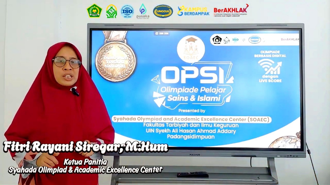P.SIDIMPUAN (Waspada.id): Pendaftaran peserta Olimpiade Pelajar Sains dan Islami (OPSI) Fakultas Tarbiyah dan Ilmu Keguruan (FTIK) UIN Syekh Ali Hasan Ahmad Addary (Syahada) Padangsidimpuan Tahun 2026 tingkat SD, SMP dan SMA sederajat diperpanjang hingga 18 April 2026.