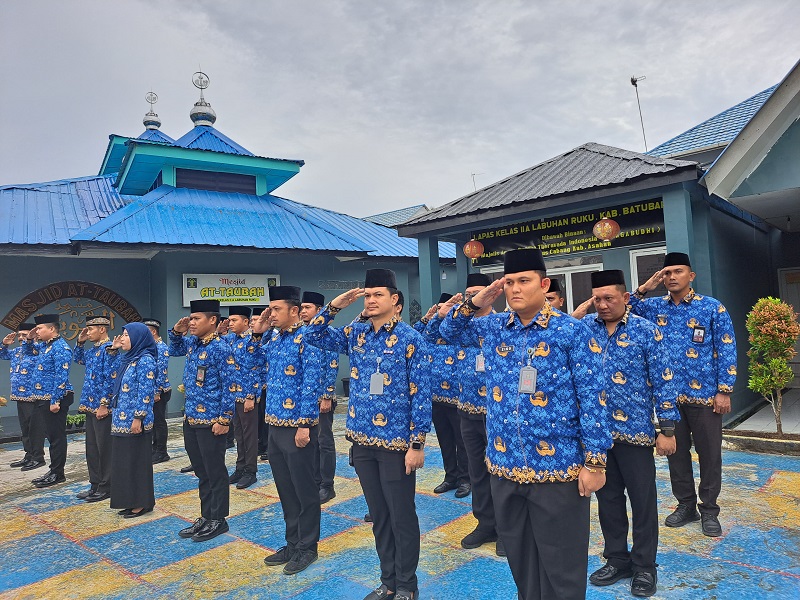 Upacara berlangsung lapangan Lapas di Labuhanruku ini diikuti seluruh jajaran pejabat struktural dan petugas serta warga binaan dengan mengusung Tema “Teladani Pahlawanmu, Cintai Negerimu”, sebagai Inspektur Upacara Kalapas Labuhanruku, Alexa.