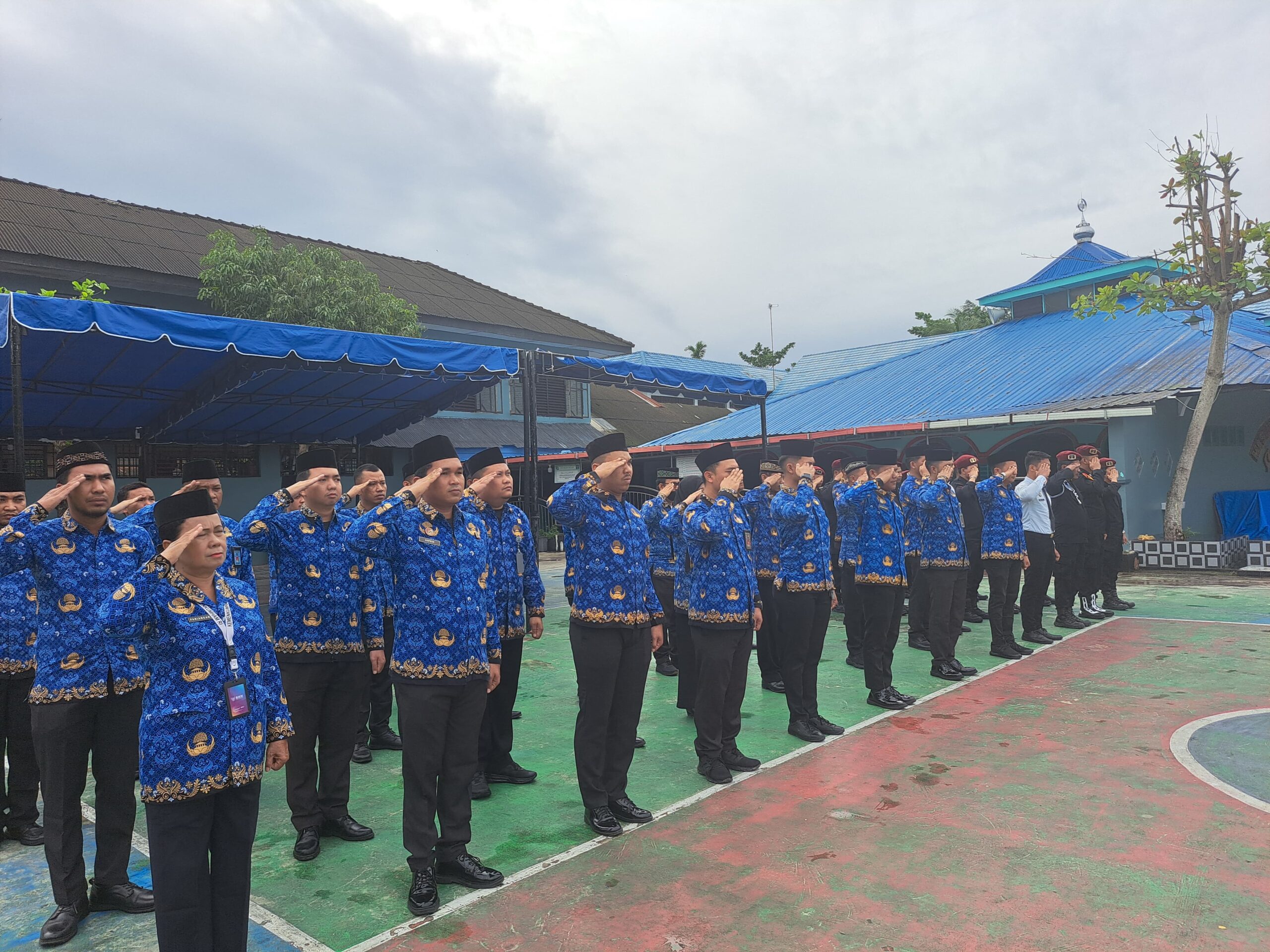 BATUBARA (Waspada): Upacara peringatan Hari Ulang Tahun (HUT) Ke-53 Korps Pegawai Republik Indonesia (Korpri) berlangsung khitmad di Lembaga Pemasyarakatan (Lapas) Kelas IIA Labuhanruku, Jumat, (29/11).