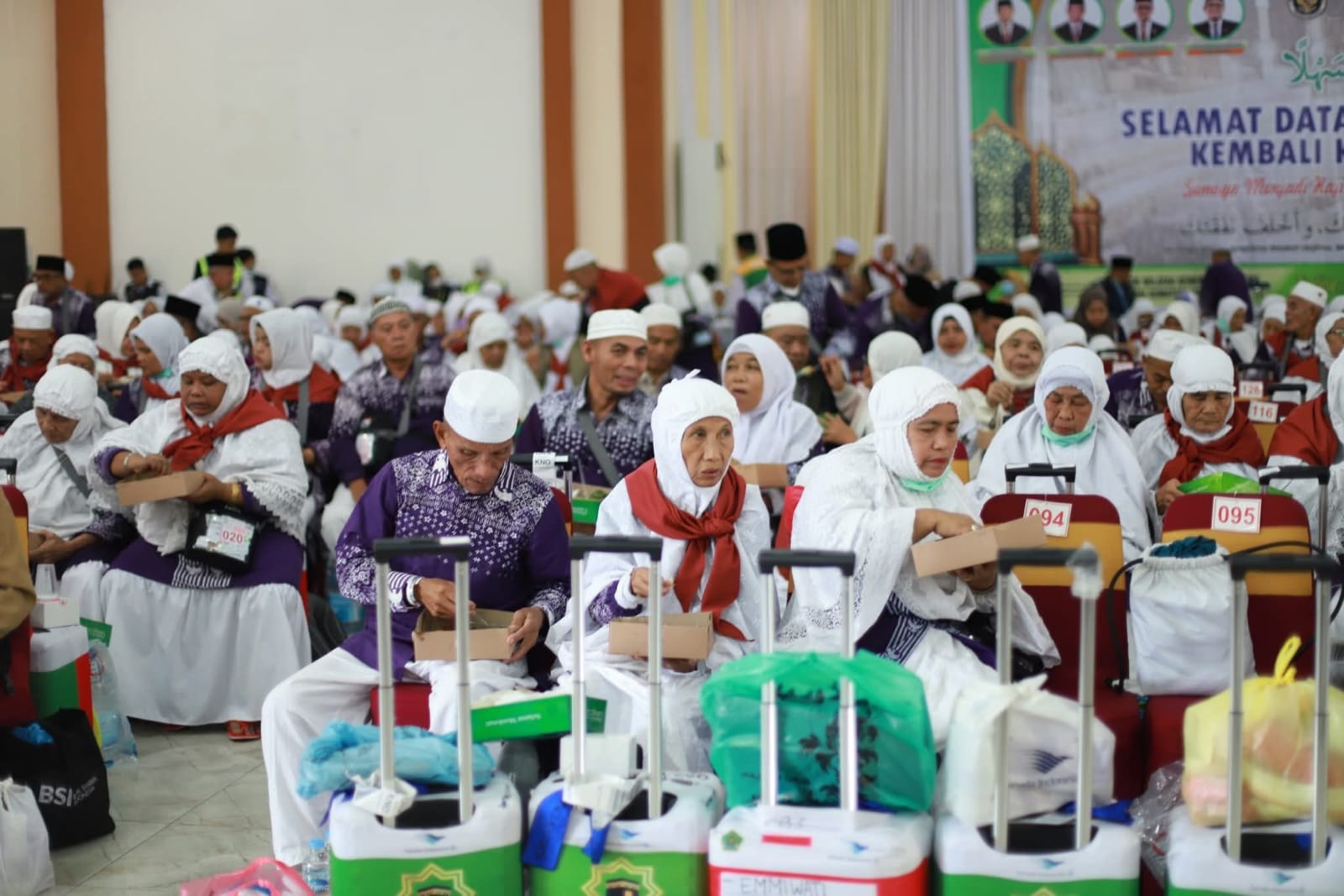 Wabup Atika Nasution pada kesempatan itu menyampaikan rasa syukur jemaah haji Kloter 5 kembali dalam keadaan sehat dan utuh jumlahnya sebagaimana doa saat diberangkatkan pada 6 Mei 2025.