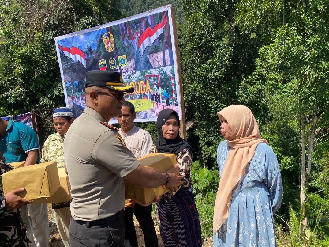 PAKPAK BHARAT (Waspada.id): Wakapolres Pakpak Bharat Kompol Donris E. Pasaribu, S.H., menghadiri acara peletakan batu pertama (groundbreaking) pembangunan Jembatan Gantung (Rambingan) di Dusun Cubancer, Desa Kaban Tengah, Kecamatan STTU Jehe, Senin (06/04/2026).