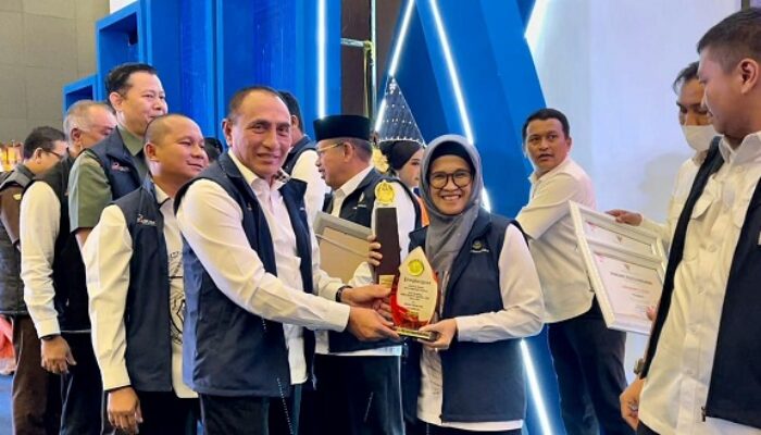 PEMATANGSIANTAR (Waspada): Wali Kota Pematangsiantar Susanti Dewayani menerima dua penghargaan dari Gubsu Edy Rahmayadi saat Musyawarah Perencanaan Pembangunan (Musrenbang) Provinsi Sumatera Utara (Provsu).