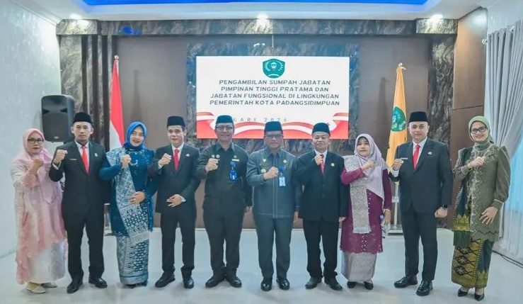 PADANGSIDIMPUAN (Waspada.id): Wali Kota Padangsidimpuan Dr. H. Letnan Dalimunthe, SKM, M.Kes secara resmi menetapkan pengangkatan empat Pejabat Pimpinan Tinggi Pratama serta sejumlah jabatan fungsional sumber daya manusia aparatur di lingkungan Pemko Padangsidimpuan.