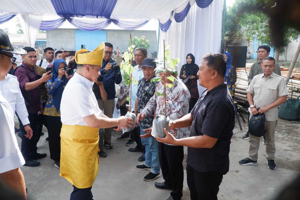 Pada kesempatan itu, Ahmad Riza Patria bersama Bupati Asri Ludin Tambunan, Wabup Lom Lom Suwondo juga menyerahkan bibit pohon anggur secara simbolis kepada warga. (id.28)