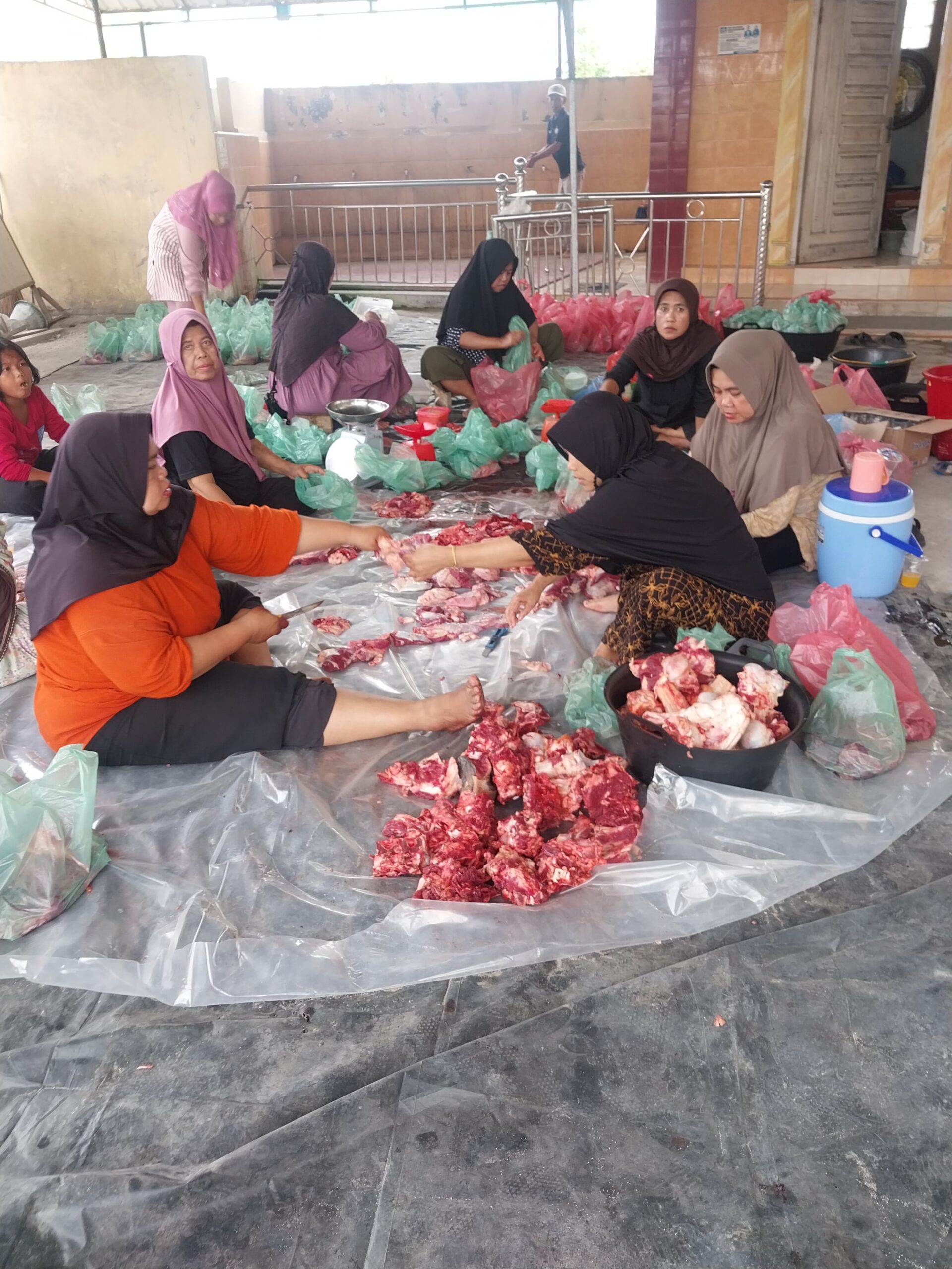 DELISERDANG (Waspada): Masyarakat Dusun Mesjid, Desa Beringin, Kecamatan Beringin, Kabupaten Deliserdang melakukan pemotongan hewan kurban untuk memeriahkan perayaan Idul Adha 1446 H, Sabtu ( 7/6/25).