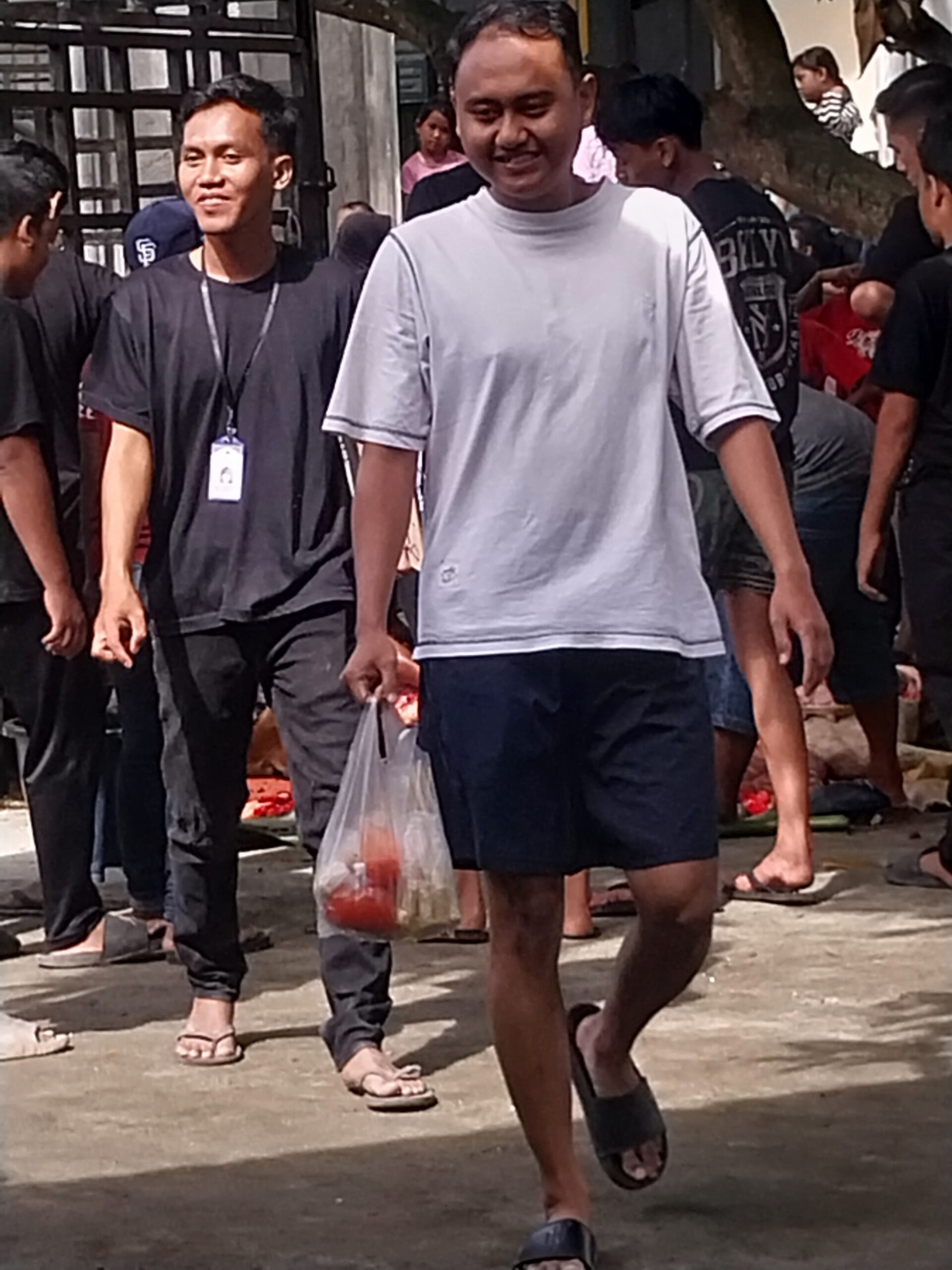 “Kalau semalam (Jumat) kita potong hewan kurban, kan waktunya mepet karena Salat Jumat. Makanya, pelaksanaannya kita lakukan hari ini. Alhamdulillah, semua berjalan dengan tertib dan lancar,” kata Aldiriansyah.
