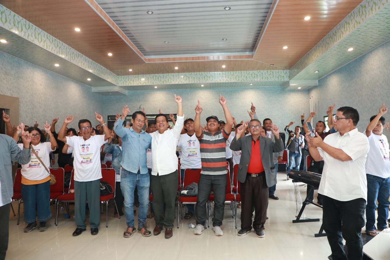 SIMALUNGUN (Waspada): Calon Bupati Simalungun Radiapoh Hasiholan Sinaga (RHS), melakukan sosialisasi dan temu ramah dengan masyarakat Kecamatan Haranggaol Horison dipusatkan di Hotel Agave Kelurahan Haranggaol, Rabu (2/10/2024).