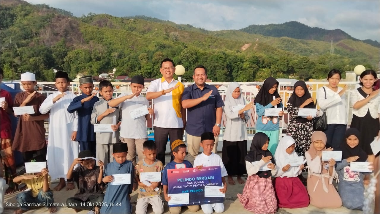Penyerahan santunan dilakukan secara langsung oleh General Manager Pelindo Regional 1 Sibolga, Muhammad Ikhlas, didampingi jajaran manajemen dan karyawan Pelindo.
